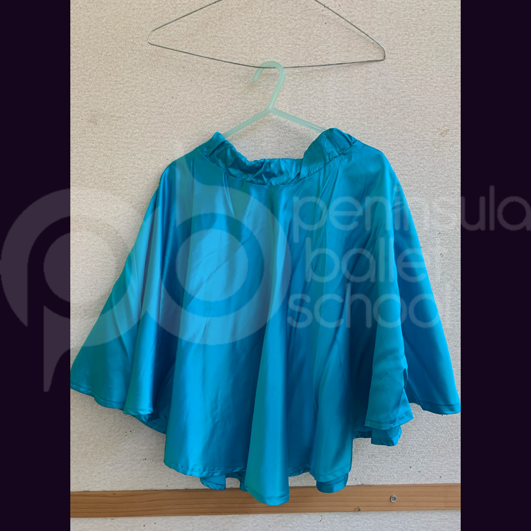 Knee length blue satin skirt.